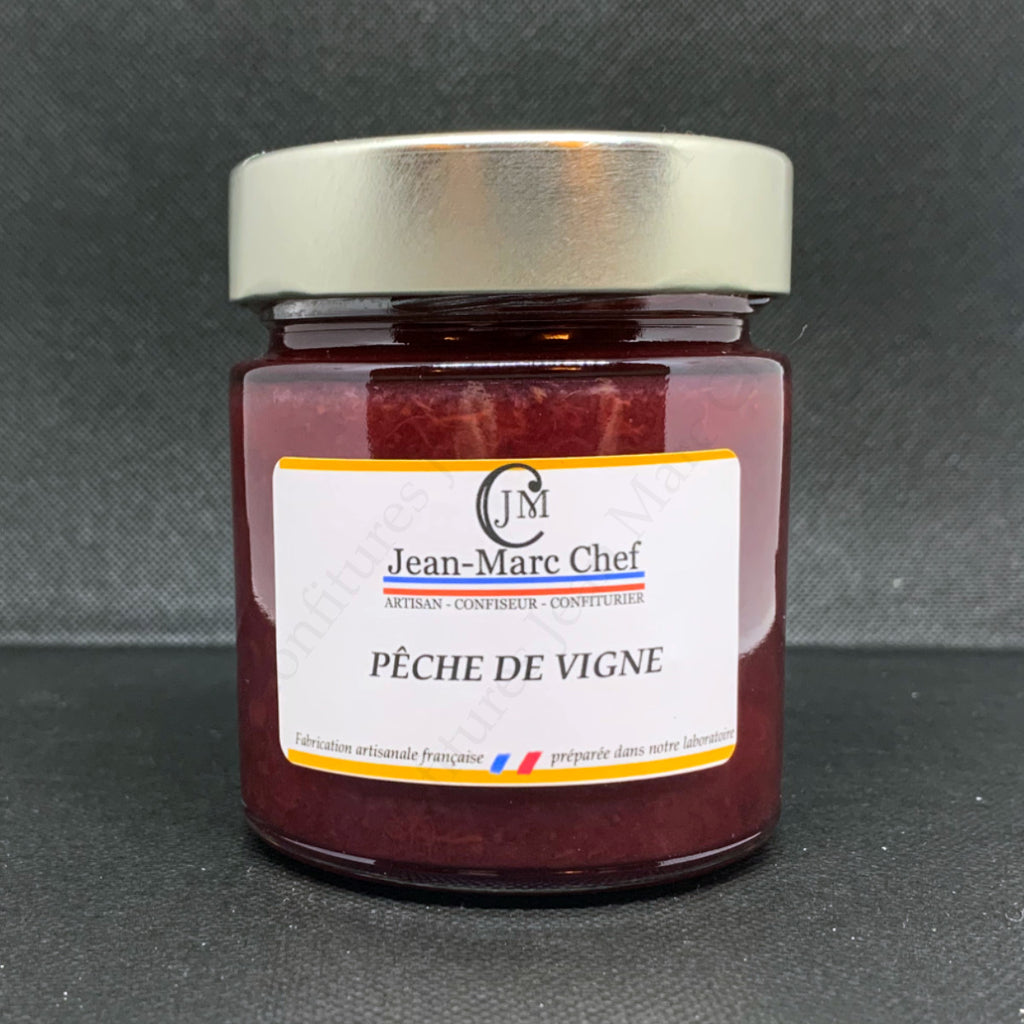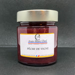 Cette confiture exquise est préparée à partir de pêches de vigne, réputées pour leur chair d’un rouge profond et leur équilibre raffiné entre douceur et acidité.